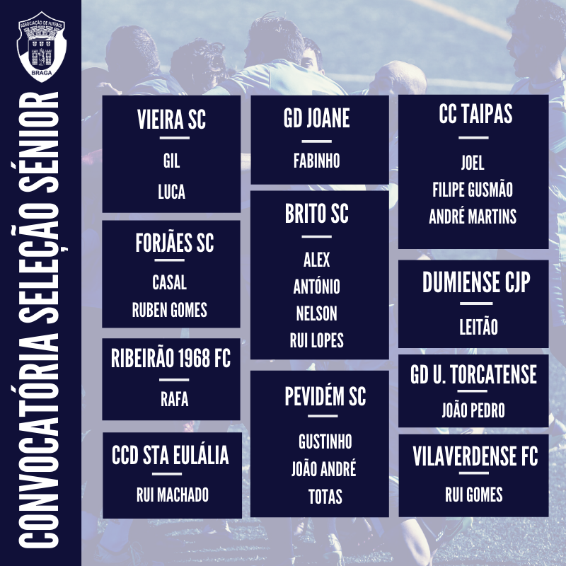A Seleção da AF Braga defronta a Seleção da AF Viana do Castelo no dia 20 (sexta-feira) de dezembro às 17 horas.