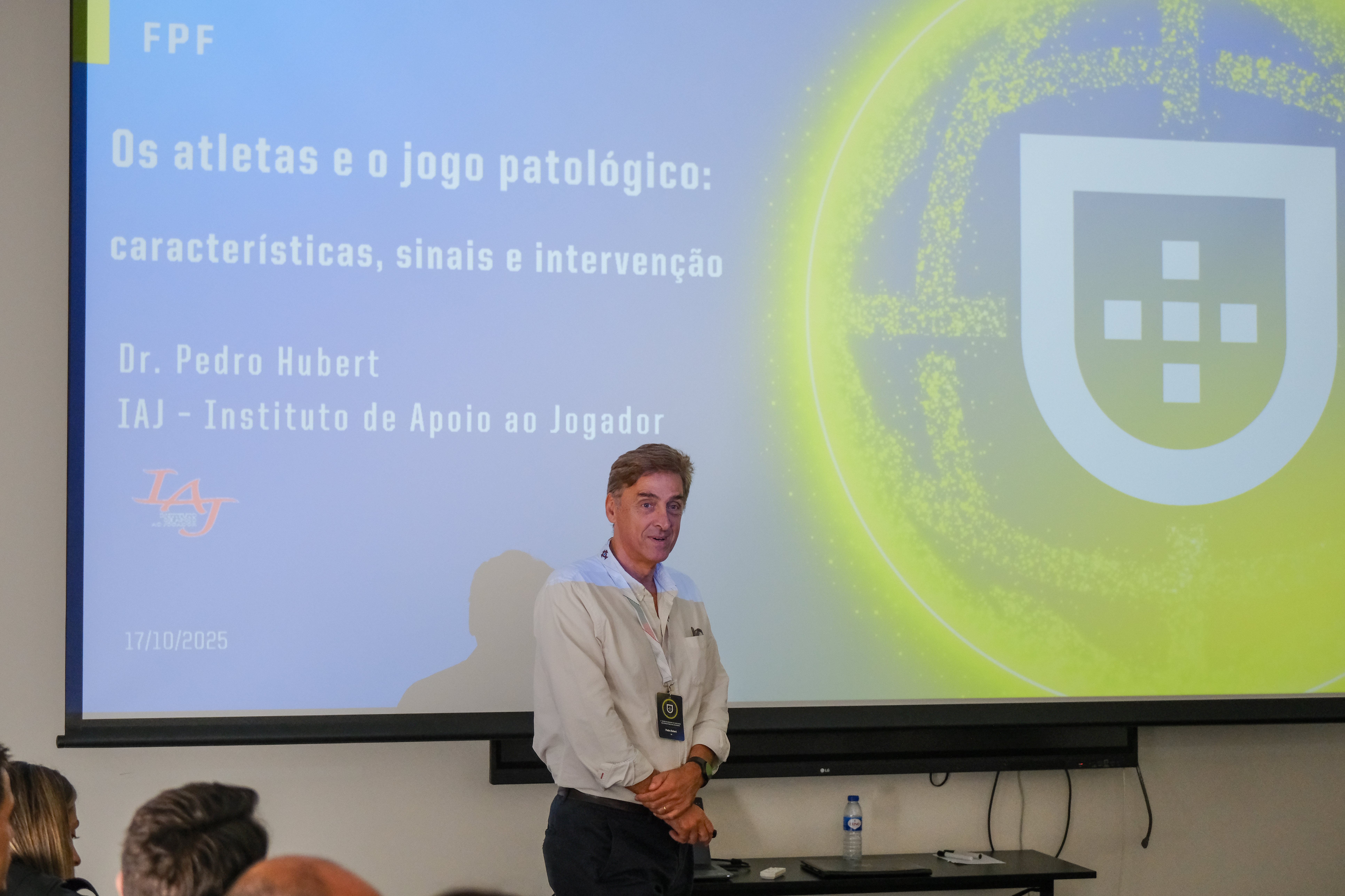 Um dos momentos em destaque foi a sessão dedicada ao tema “Vício em apostas desportivas”, conduzida pelo psicólogo Pedro Hubert, do Instituto de Apoio ao Jogador (IAJ), que abordou a importância da prevenção e do acompanhamento psicológico neste contexto.